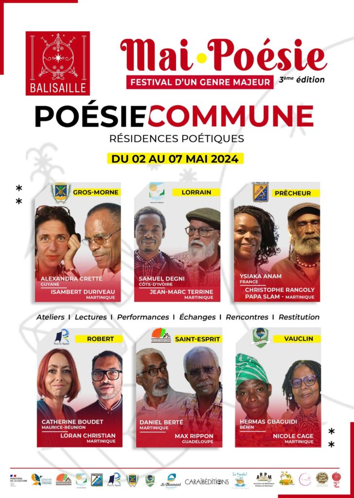 A partir du Jeudi 2 Mai, poètes locaux et internationaux en binômes investissent la Martinique et insufflent un élan poétique aux villes partenaires dans le cadre de « PoésieCommune ».