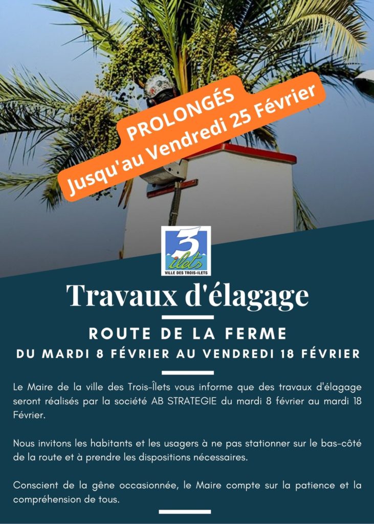 Info de la commune des Trois-Îlets: Prolongement des travaux d’élagages