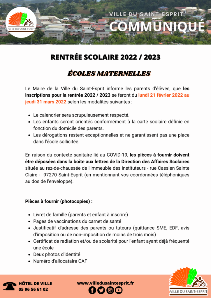 Lien complémentaire: https://www.villedusaintesprit.fr/rentree-scolaire-2022-2023/